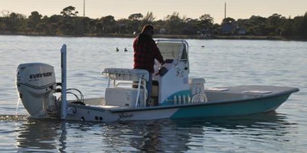 The 23 Shoalwater Cat is the largest model in the Shoalwater line. The boat rides excellent in extremely shallow waters and runs well in the heavy chop of the bay and inshore waters of Florida. The 8" draft will allow you to get shallower than any bay boat on the market today.